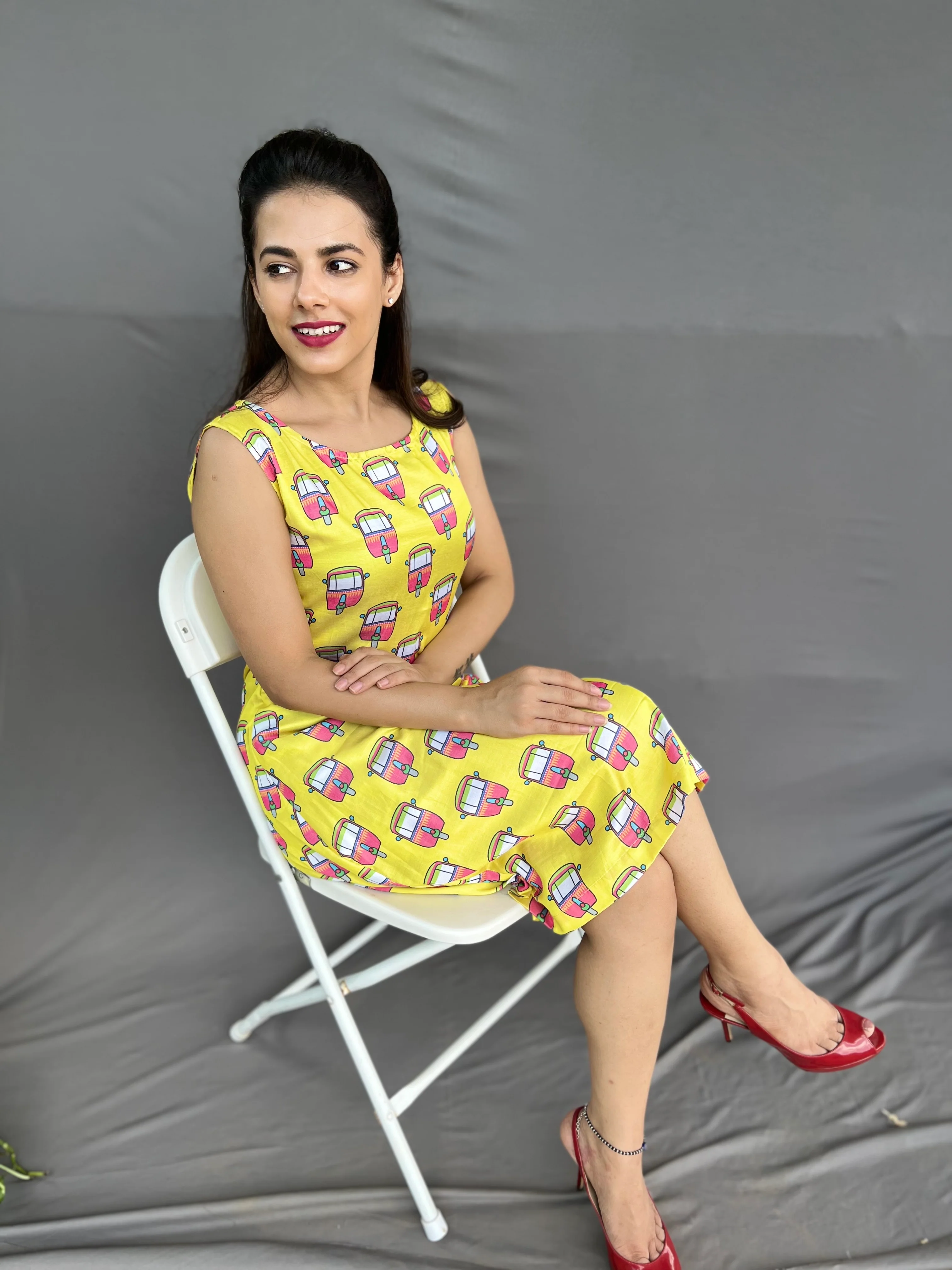 Chic and stylish satin crepe sheath dress with funky auto prints! Team it up with a pair of heels and you are all set rock!!