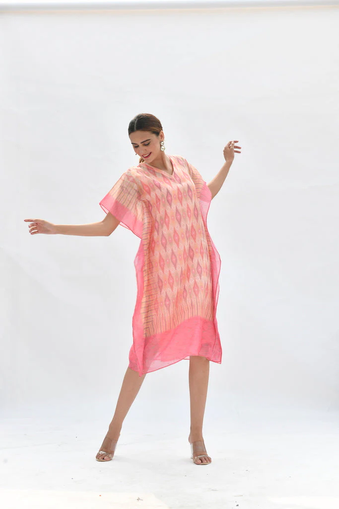 Easy breezy kaftan dress with a designer printed pattern.