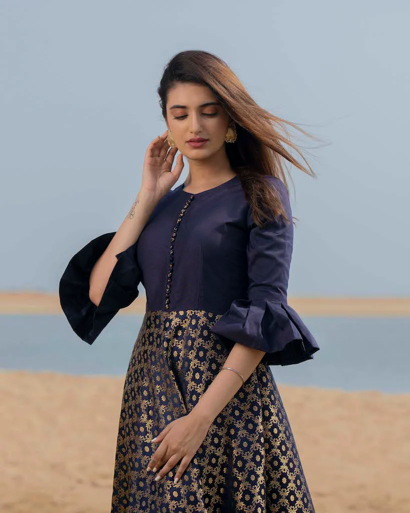 Dupion Cotton and Handloom Banarasi Fit and Flare Dress.