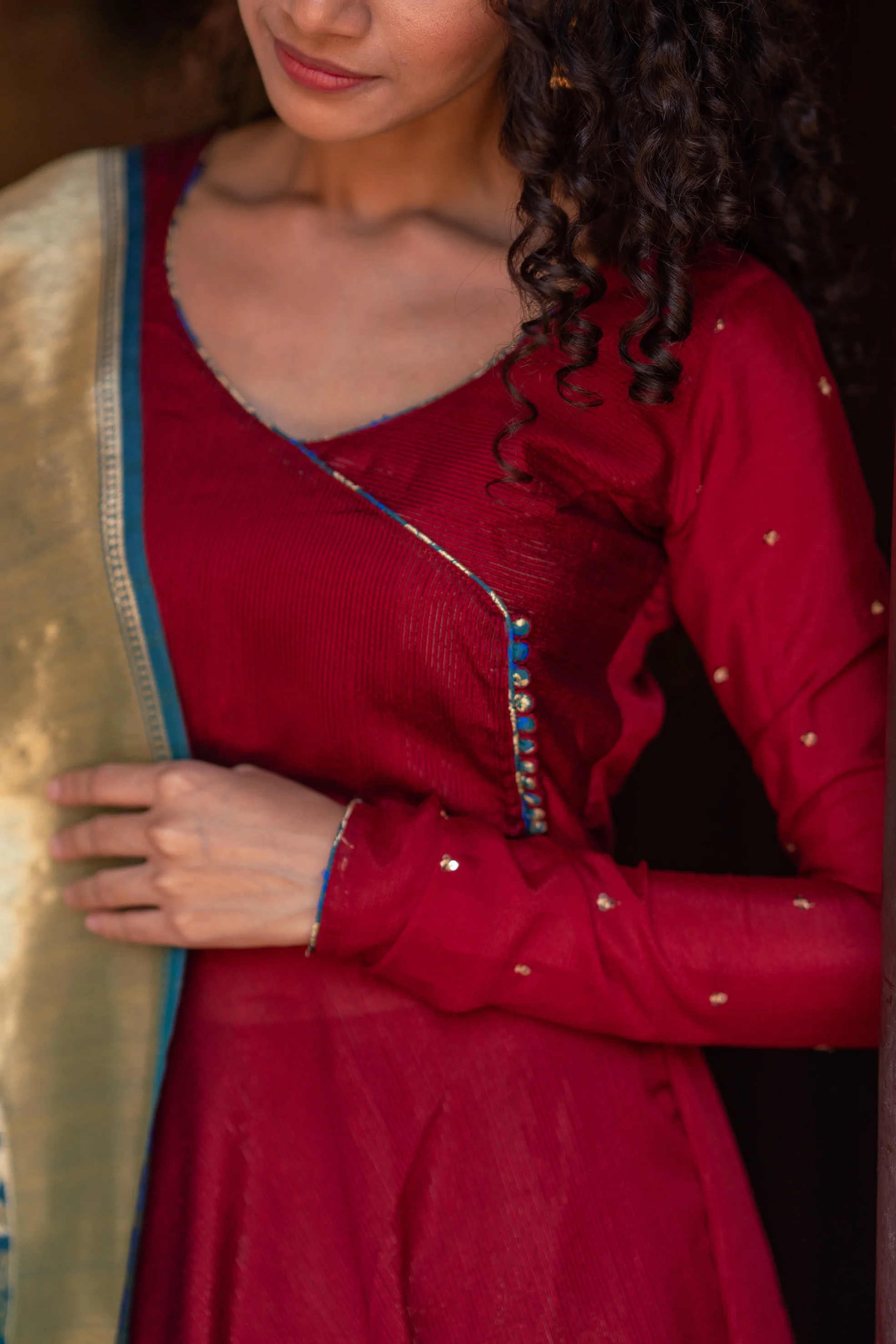 You can get so effortlessly elegant with this Anargha Style kurti set with zari embellishment.
