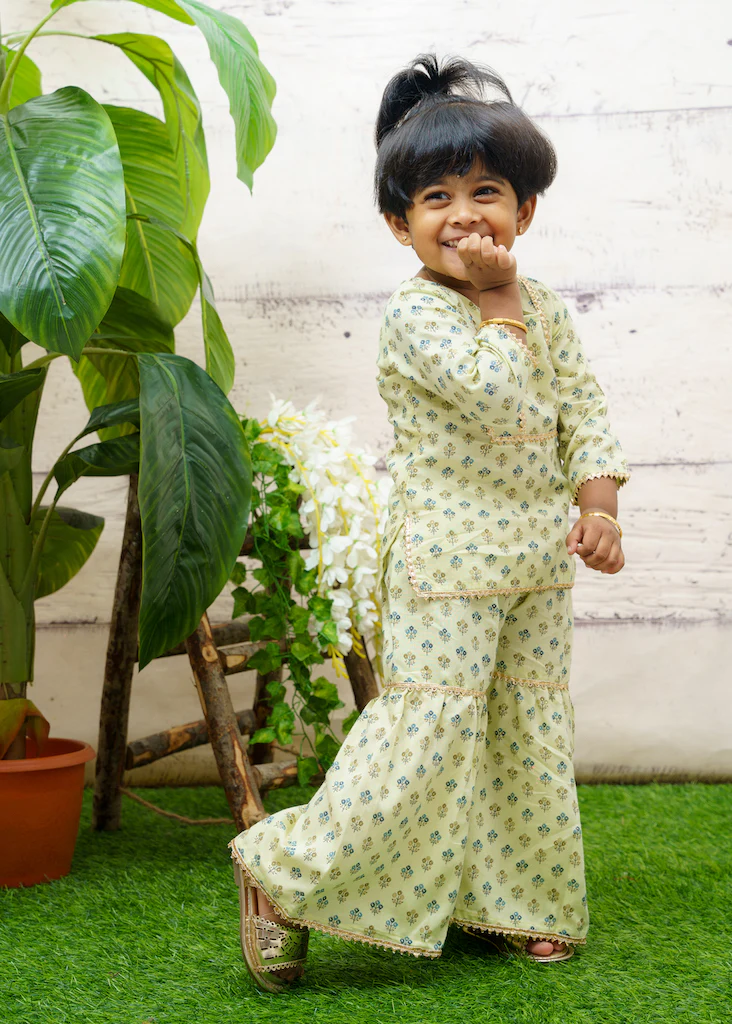 EXP - Printed Rayon Top and Sharara Pant - Green